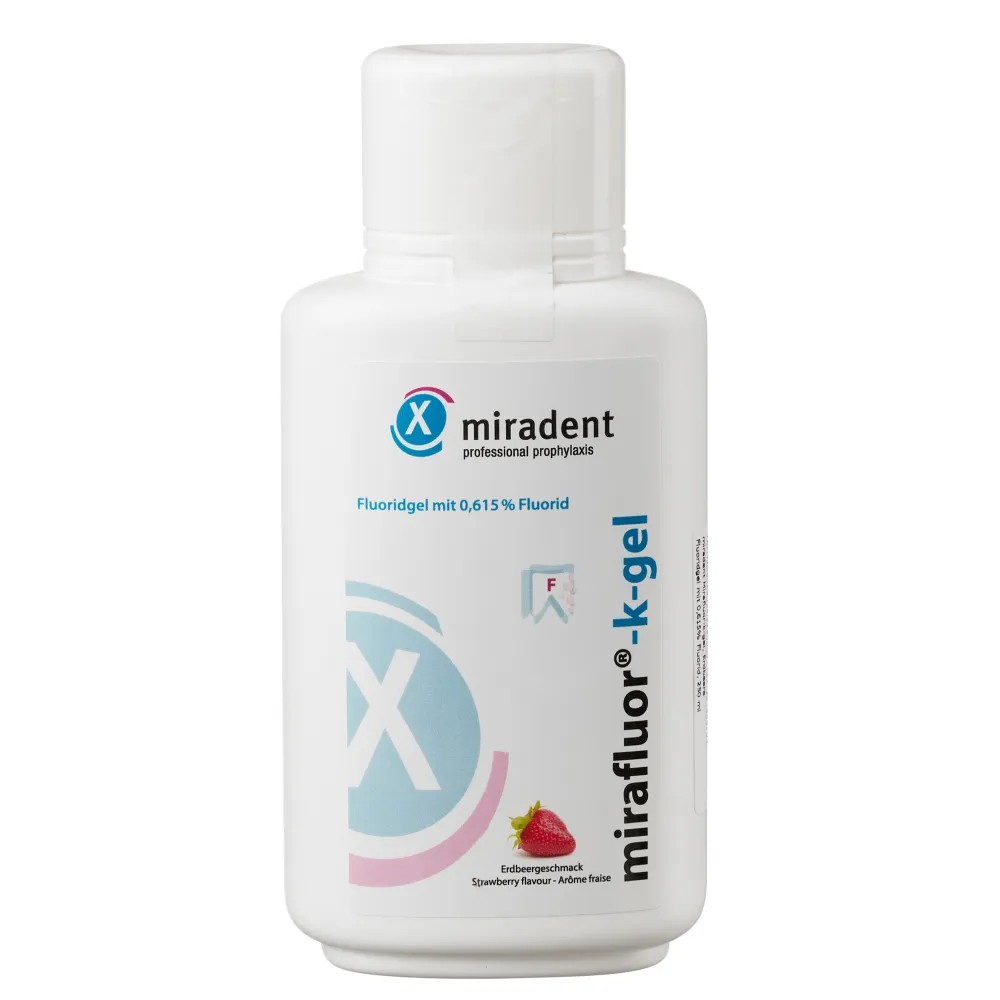 Для ваших дітей розроблений якісний гель з низькою концентрацією, який містить всього 0.615% фториду. До проростання постійних зубів та їх подальшого хорошого розвитку треба дбати про безпеку дитячих молочних зубів. Починаючи з віку 6 років, коли починають рости перші корінні зуби, важливо стежити за їх здоровим розвитком з самого початку. Порівняно з іншими гелями, Mirafluor®-k-gel має невисокий вміст фторидів, що справді зменшує можливість флюорозу постійних зубів. Хорроший показник pH-5,5 допомагає легко уникнути зайвого навантаження на зубну емаль дитини.